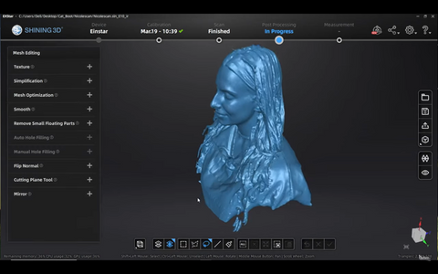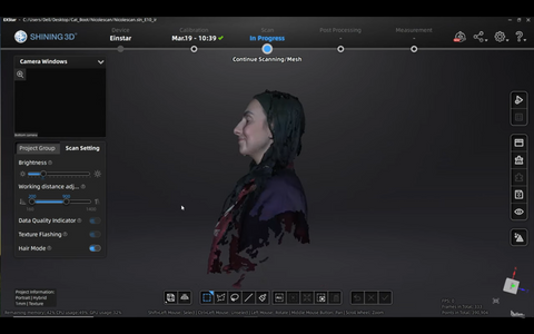 Obwohl der Scanner die Daten der Nase aufgrund des Nasenlochs und seiner Hohlheit nicht gut erfassen kann, funktionierte es gut, nachdem er die Einstellungen für das Mesh-Modell durchlaufen hatte. Nicole war unterdessen von der Leistung von Einstar bei Haaren begeistert: „Ich bin insgesamt sehr beeindruckt davon, wie der Scanner Haare erfasst. Es gibt einen Haarmodus, aber ich habe bei vielen anderen Scannern festgestellt, dass er sie nicht erfasst, insbesondere wenn es sich um schwarze Haare handelt.“