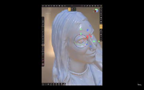 Nachdem sie das digitale Modell hatte, importierte sie es in Nomad, eine Bildhauerei-App für das iPad, um dem Modell ihre Augen hinzuzufügen, die während des 3D-Scannens geschlossen waren. Sie fügte auch einige weitere Details zu ihrem schwarzen Haar und den Nasenlöchern hinzu, die zu dunkel sind, als dass der Scanner sie erreichen könnte.