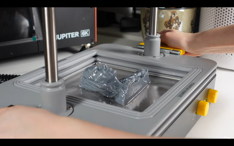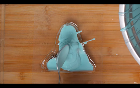 Anschließend druckte sie das Modell mit einem Harzdrucker aus und begann, die Schokoladenform durch Vakuumformen vorzubereiten. Kleine Luftlöcher sind bei diesem Vorgang wichtig, damit das Material in diesen Bereich eindringen kann und man Details wie Augen, Nasenlöcher und Haare sieht. Sie verwendete einen Snapmaker CNC-Bohrer und bohrte in das Harzmodell, um Luftlöcher zu erzeugen.