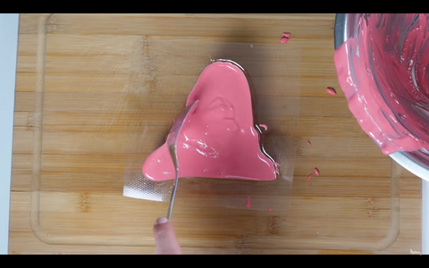 Mithilfe einer Thermoformmaschine erstellte sie zwei Plastikformen von sich selbst. Mit dieser Maschine können Benutzer einen Scan oder Ausdruck erstellen und daraus ein reales Objekt machen, sei es eine Kerze, Schokolade oder Seife. Und dieses Mal entschied sie sich für Schokolade. Sie erhitzte etwas farbige Schokolade im Wasserbad und goss sie in die Plastikform.