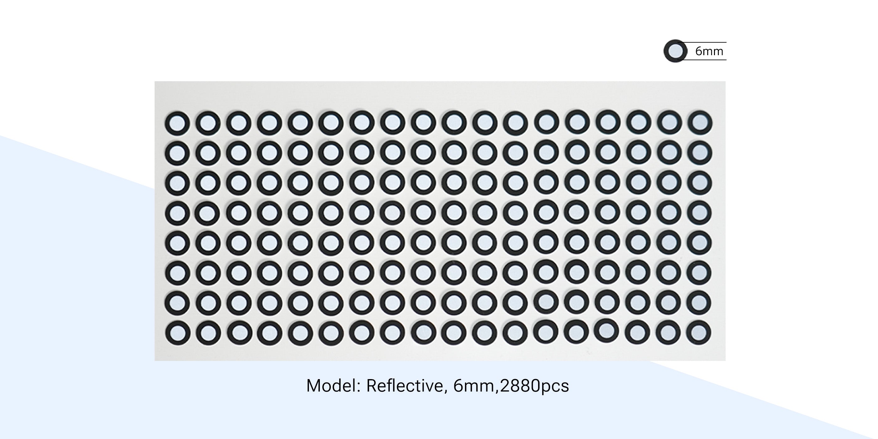 6,0 mm Größe: Innendurchmesser 6,0 mm, Außendurchmesser 10,0 mm, insgesamt 2880 Punkte.