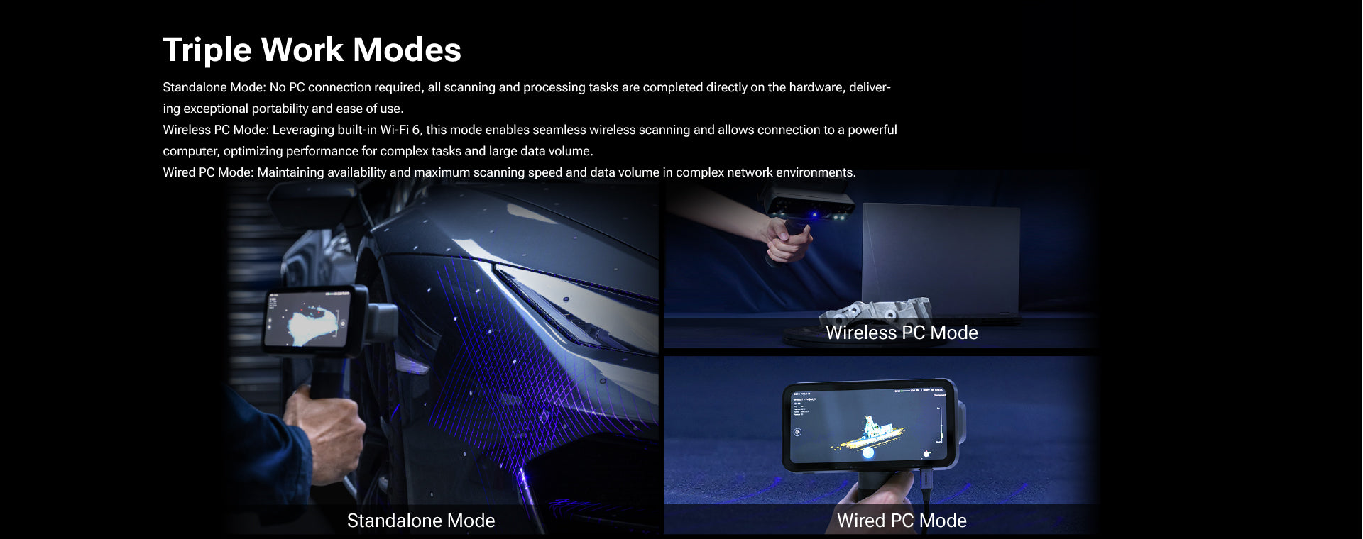 EinScan Rigil verfügt über drei Arbeitsmodi: