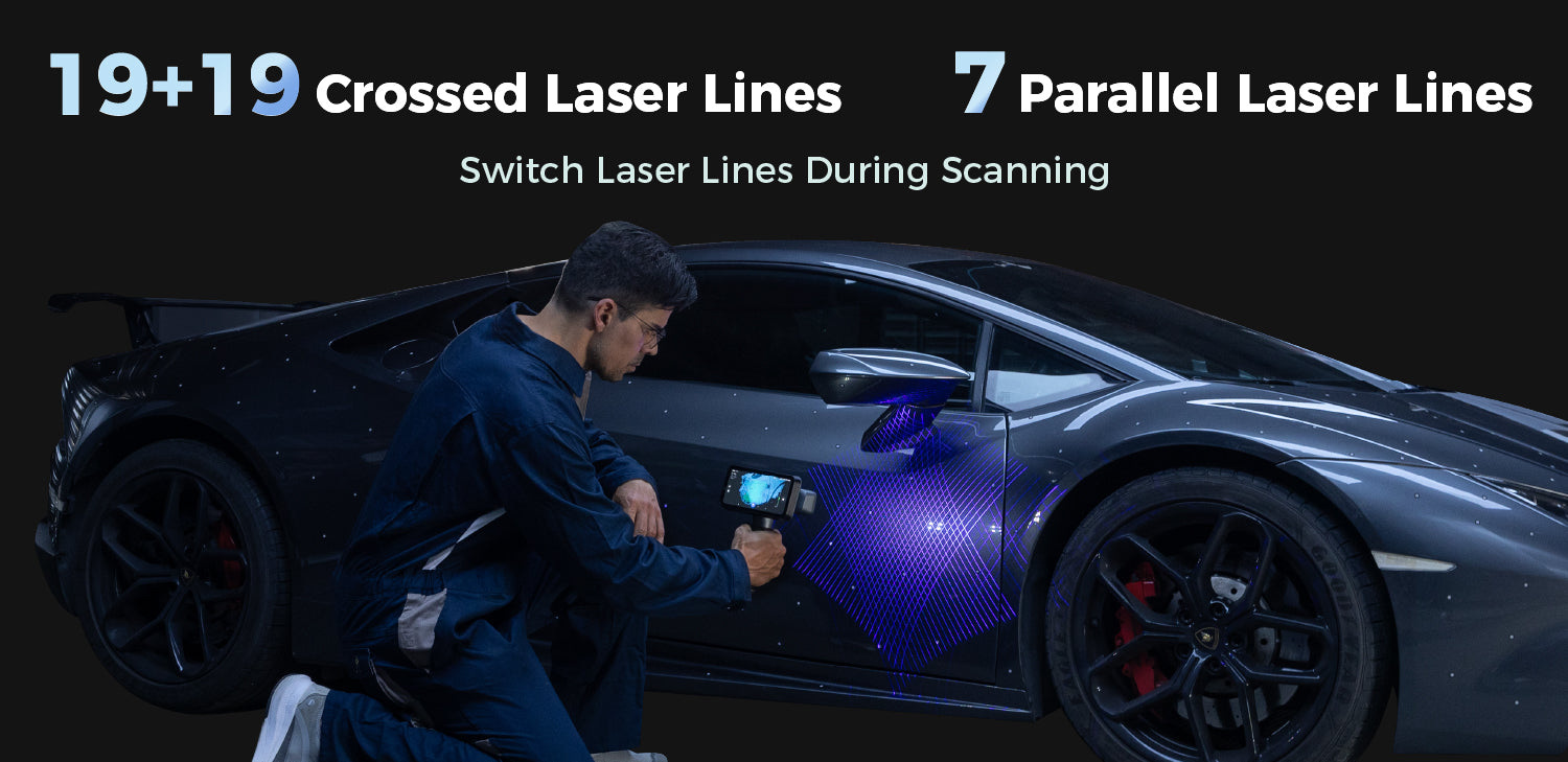 Die 9 Kreuzlaserlinien und 7 parallelen Laserlinien von EinScan Rigil sind während des Scanvorgangs umschaltbar, und die in jedem Modus erfassten Daten können zusammengeführt werden, um Geschwindigkeit und Detailgenauigkeit in einem Scanprojekt zu erreichen.