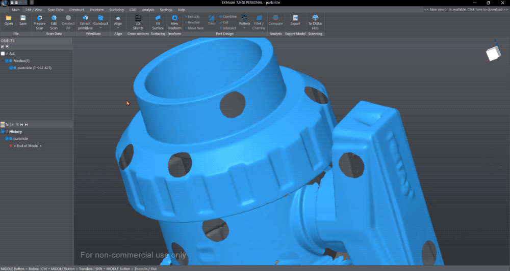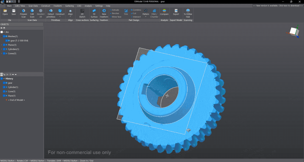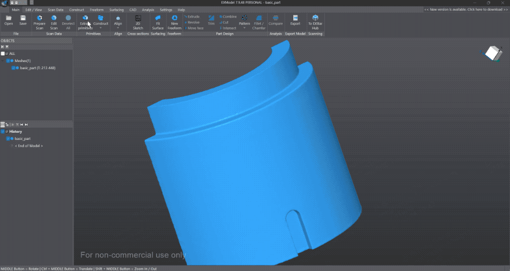 EXModel Personal is a powerful gateway that simplifies CAD modeling, from 3D scanning to manufacturing. It provides a comprehensive set of tools that enable you to transform a mesh into a professional-quality CAD solid model in just a few simple steps.